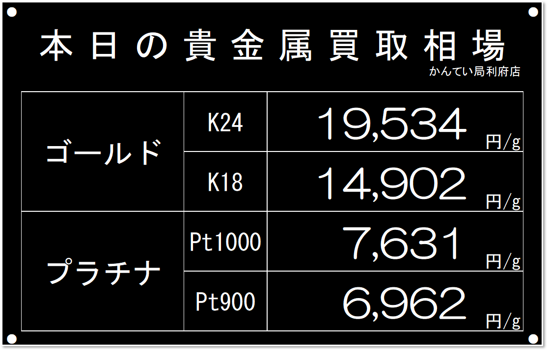 2025年10月10日(金) 【 本日の 金(ゴールド)・プラチナ 買取価格表】