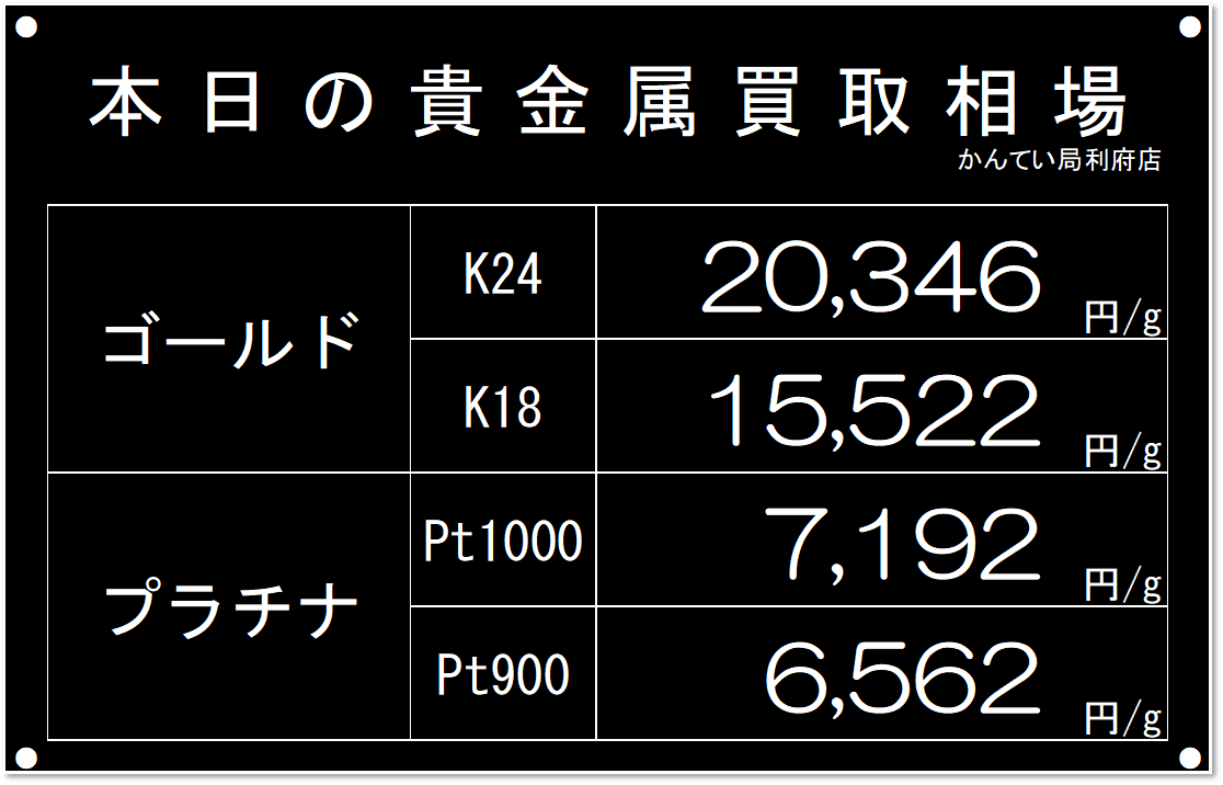 2025年11月22日(土) 【 本日の 金(ゴールド)・プラチナ 買取価格表】