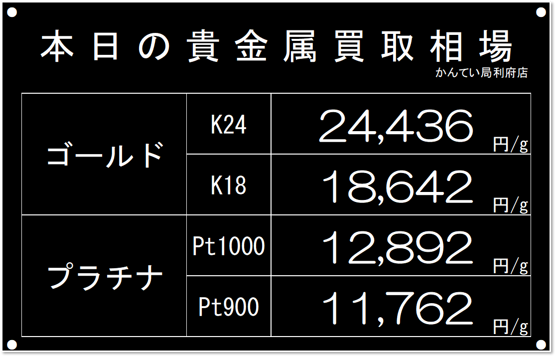 2026年1月24日(土) 【 本日のゴールド・ プラチナ 買取価格表】