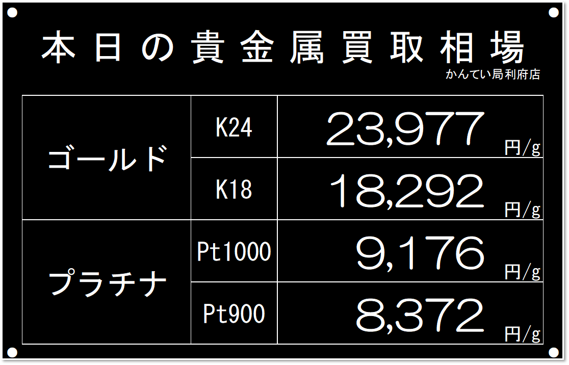 2026年2月19日(木) 【 本日のゴールド・ プラチナ 買取価格表】