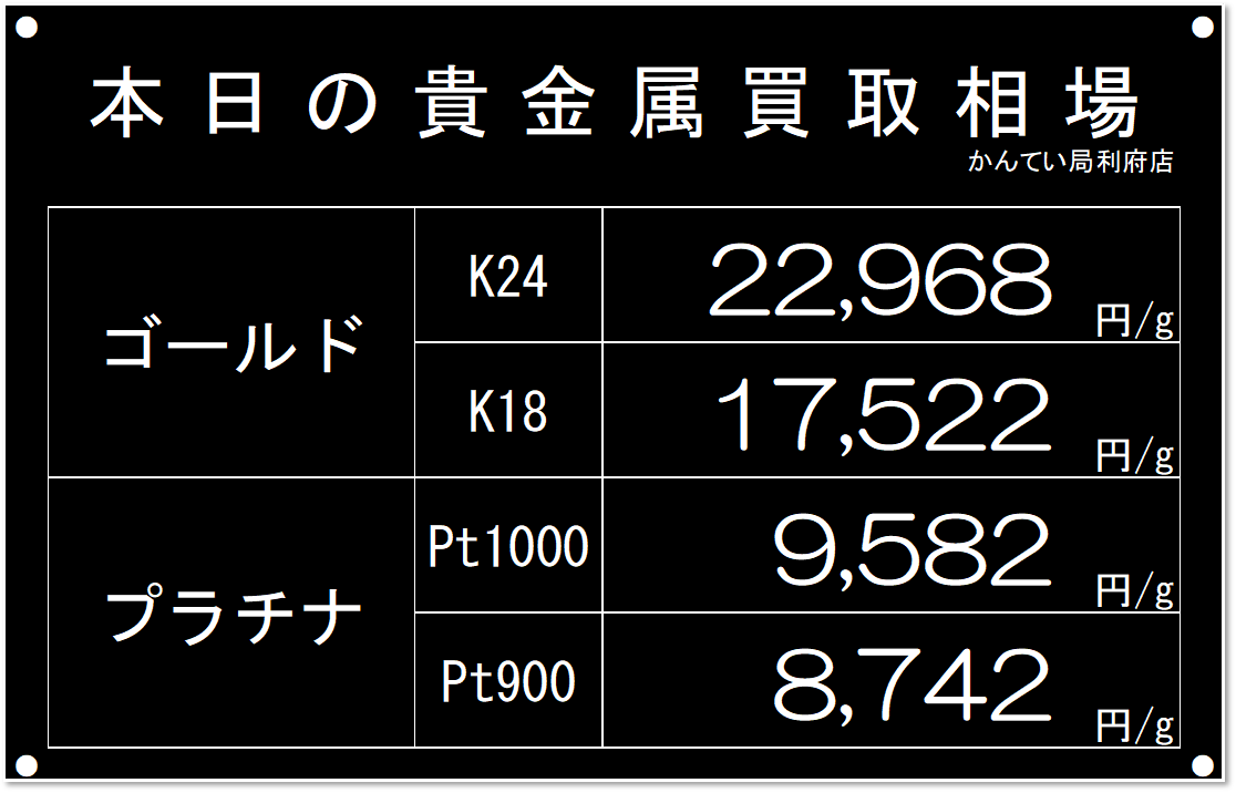 2026年3月26日(木) 【 本日のゴールド・ プラチナ 買取価格表】