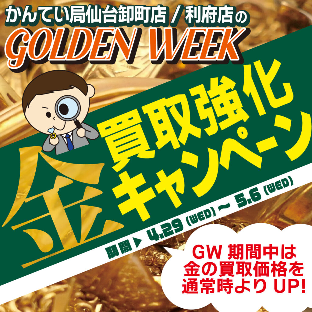 かんてい局利府店ですが、今年のGWさらに【金】買取に力を入れて
