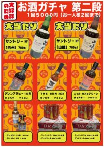 ウイスキー、ブランデー、シャンパンなどお酒も