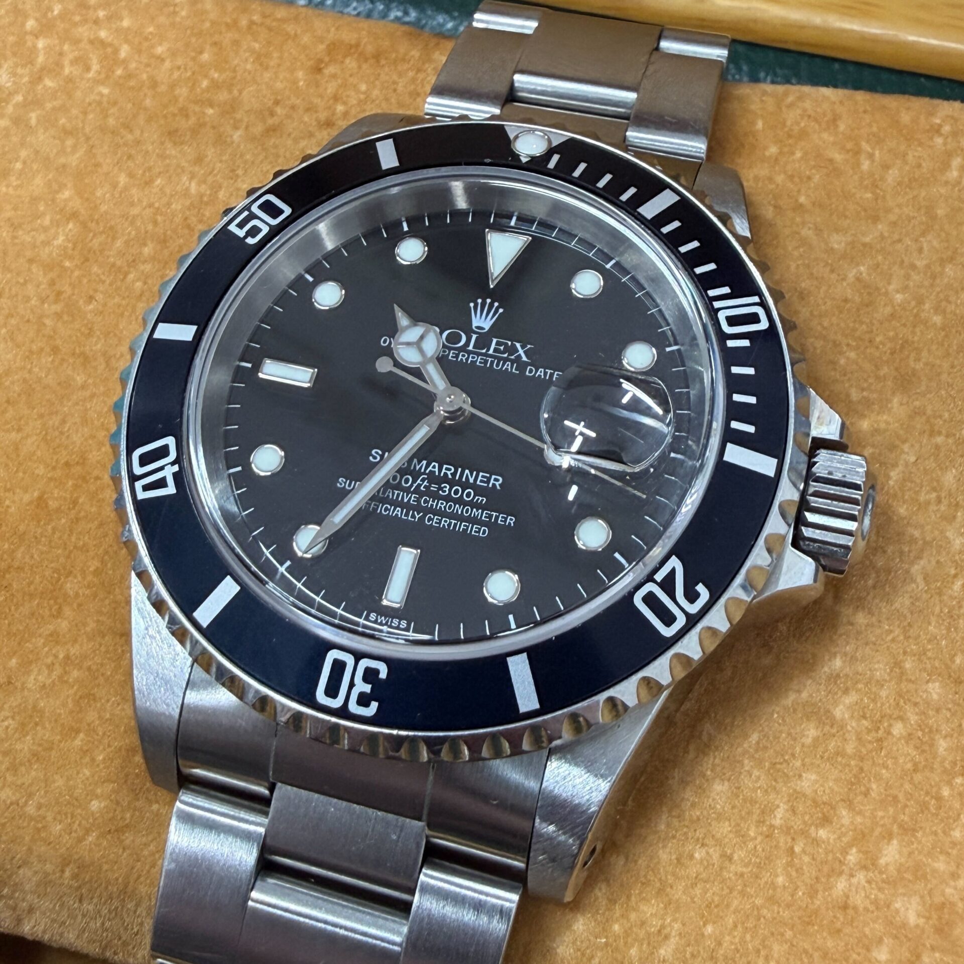 サブマリーナデイト16610は、1988年頃から2010年まで製造されたモデルで、アルミベゼル×40mmケースという王道のスポーツロレックスとして、現在も高い評価を受けています。