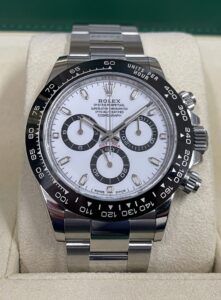 デイトナ Ref.116500LN 白文字盤は、いわゆる「パンダダイヤル」として非常に人気が高く、