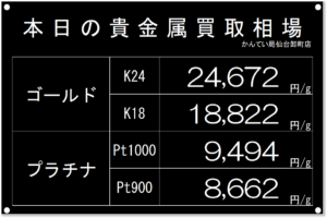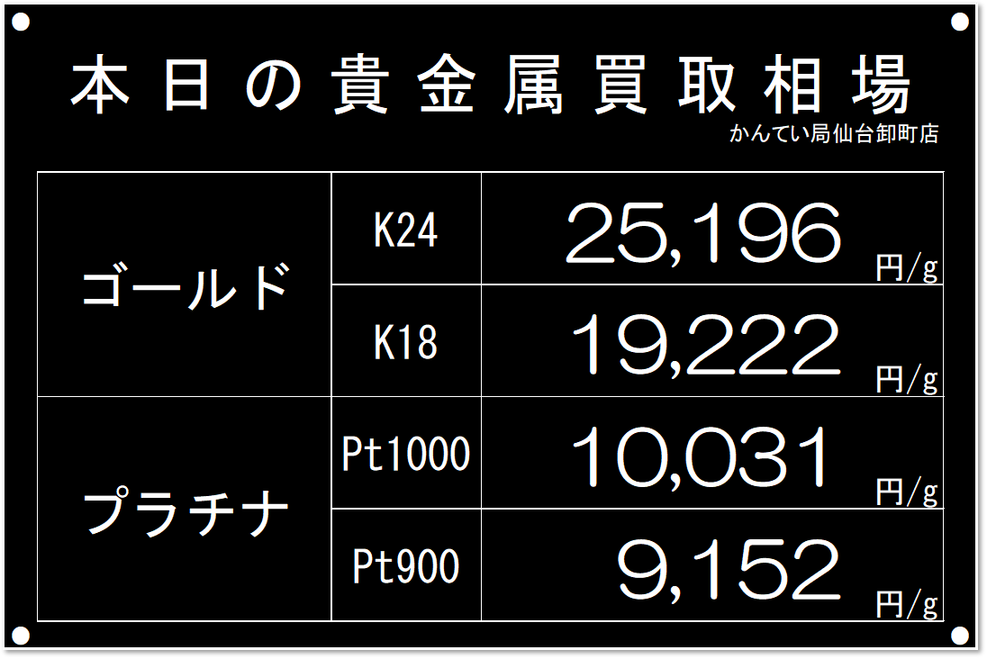 質屋かんてい局仙台卸町店の本日の金プラチナ買取相場です。