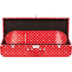 スポーツ系のアイテムでは、ボードスポーツへの進出が目を引きます。例えば、メイプル材のデッキにミラードクローム仕上げを施し、グリップにクラシックなモノグラムを配したスケートボードは、ホイールにもロゴが入った本格仕様で、専用のナチュラルカウハイドレザーストラップが付属したコレクターズアイテムです。また、ストリートブランドのシュプリームとコラボした赤と白のモノグラムスケートボードは、専用トランクにデッキやトラック、工具類を収めた豪華なセットとして話題を呼びました。