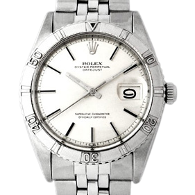 ターノグラフ(Turn-O-Graph)は、デイトジャストの系譜を持ちながら回転ベゼルを備えたユニークな存在として知られるモデルです。ロレックスの中でも、クラシックなドレスウォッチとしてのエレガンスに、回転ベゼルというスポーティな要素を融合させたハイブリッドなデザインが特徴です。