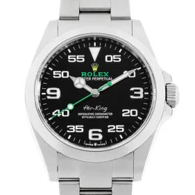 エアキング(Air-King)は、航空業界との深い関わりを背景に持つ、ロレックスの中でも歴史あるパイロット系モデルのひとつです。視認性を重視したシンプルな文字盤デザインと、実用性に優れたケースサイズが特徴で、プロフェッショナルモデルでありながら日常使いしやすい点も高く評価されています。
