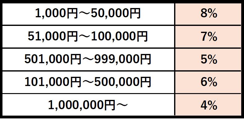 以上の条件で受戻すことができます。質料は融資額が多いほど低くなります。