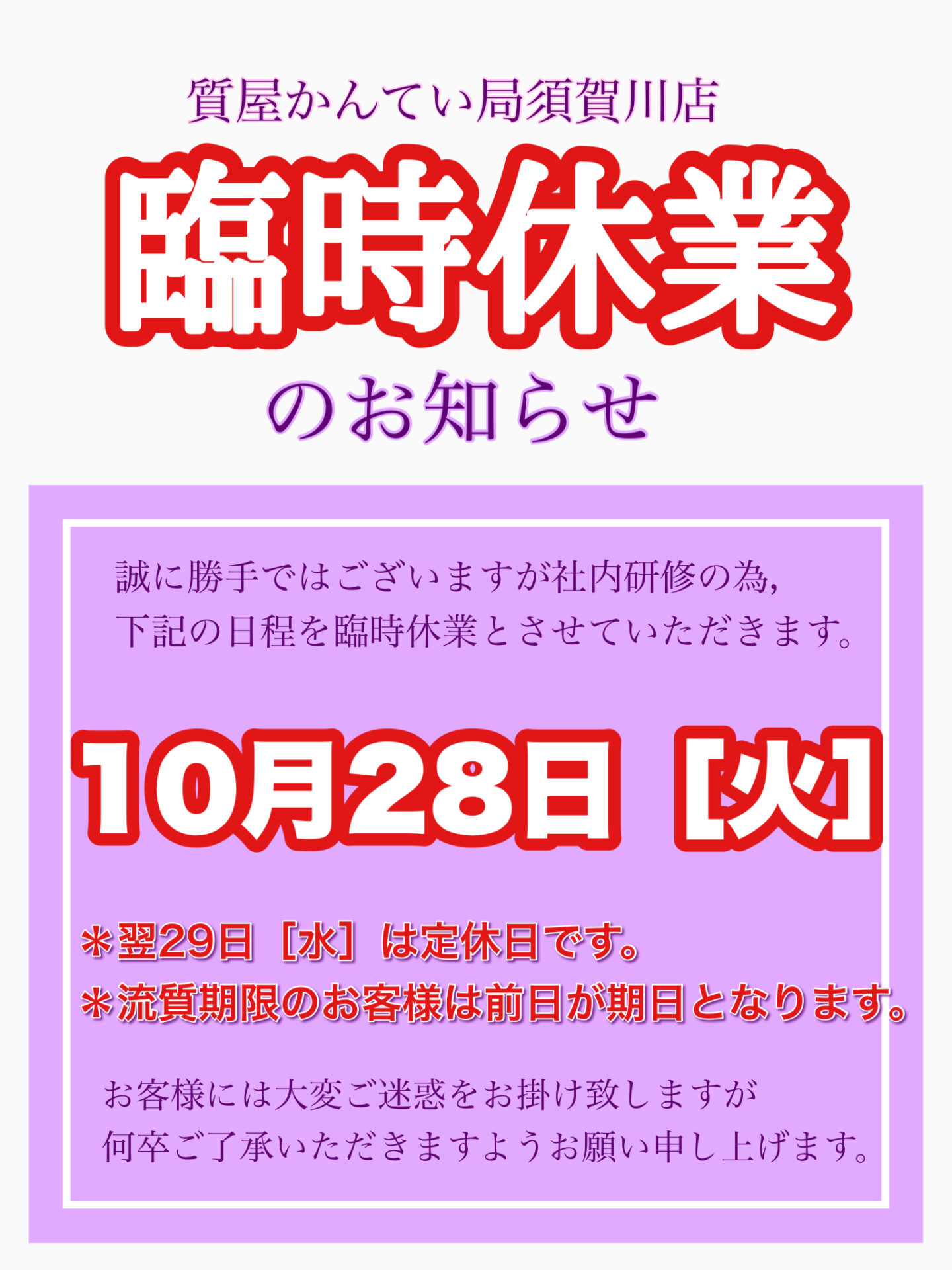 [Kantei-Kyoku Sukagawa Pawnshop Business Hours]