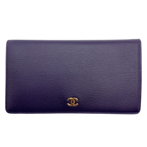 シャネルのココマーク パープルレザー二つ折り財布をお買取りさせて頂きました。