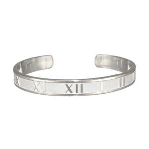 手元にさりげない輝きを添えるなら、アトラスのナローバングルがぴったり。細身のシルエットにローマ数字が刻まれたデザインは、時計や他のブレスレットとの重ね付けにも最適です。