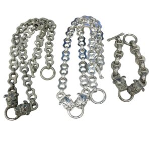 重量感のあるチェーンデザインのネックレスやブレスレットが確認できます。