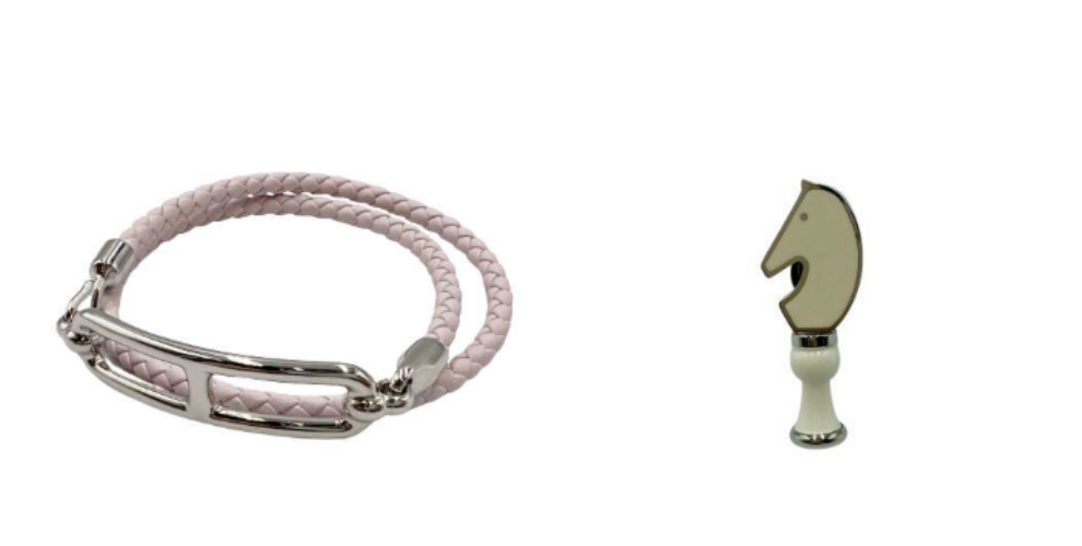 ブレスレットやチャーム、ベルトといった小物にも、轡や馬をモチーフにしたデザインが用いられています。