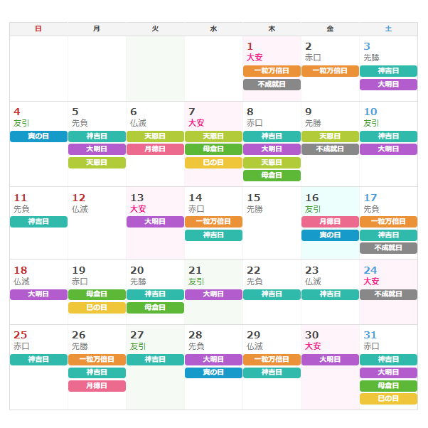 六曜の中で最も縁起の良い日。