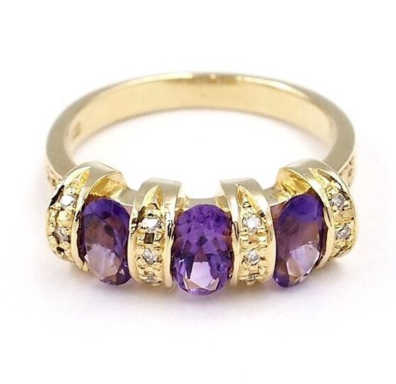 また、メインにアメジストを配し、ダイヤモンドや他の色石をさりげなく組み合わせたデザインも、上品さの中に華やかさを添えてくれ、おすすめです✨