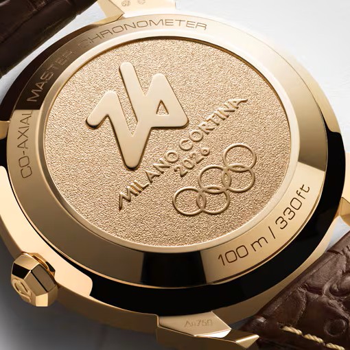 ケースバックには、ミラノ・コルティナ2026のロゴをあしらったメダリオンを配しOMEGAとオリンピックとの深い結びつきを象徴しています。