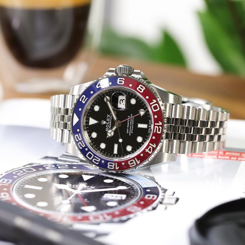 このデザインはGMTマスターの歴史を象徴するアイコン的存在であり、ロレックスファンのみならず多くの時計愛好家から支持されています。