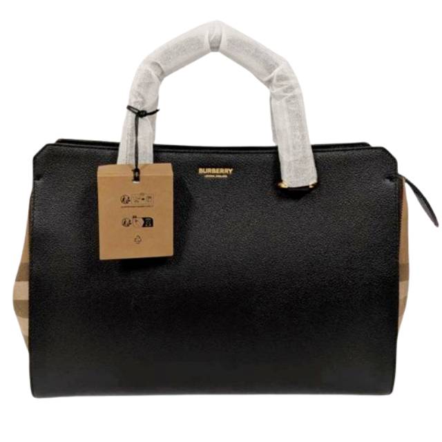 ブラックの牛革にサイドチェックのキャンバスを組み合わせた上品なデザイン。ハンドバッグ・ショルダーの2WAY仕様で、どんなシーンにも馴染むデイリーからお出かけまで頼れるアイテムです。