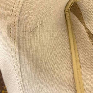 今回のバッグは使用感が強く、ジッパーの開閉に難点があり、内側に汚れやペン跡が見受けられました。また、型崩れや外観のスレなど、状態面で若干のマイナスがありました。