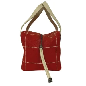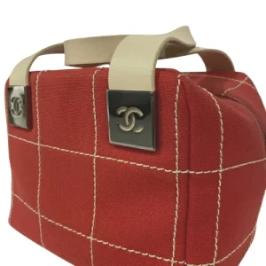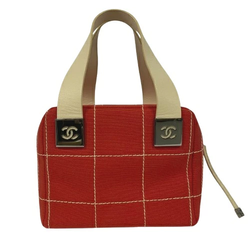赤×白の配色が目を引く、シャネルのチョコバー ハンドステッチ ハンドバッグです。