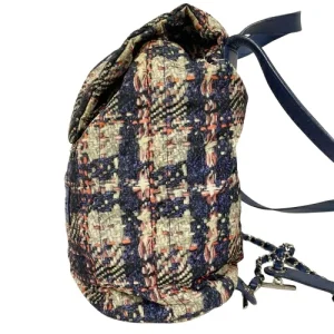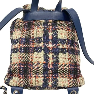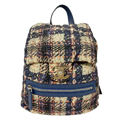 ツイードプリントと高級レザーの組み合わせが上品な、シャネルらしいデザインのリュックです。