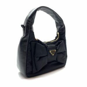 従来のナイロンよりも上品な光沢があり、高級感漂うナッパレザーとの組み合わせが「大人なプラダ」を演出します。 -