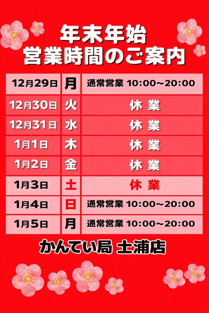 本年もかんてい局土浦店を支えていただきましたお客様に改めて心より御礼申し上げます。