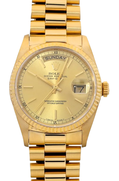 ロレックスのコレクションにおいて、デイデイト(Day-Date)は単なる高級腕時計ではありません。それは「成功者の時計」として世界的に認知され、揺るぎない地位を確立した文化的アイコンです。1956年の誕生以来、デイデイトは革新的な技術と最高級の素材、そして時代を超越したデザインを融合させ、世界中のリーダーや影響力のある人々の腕を飾ってきました。この記事では、デイデイトの豊かな歴史とその普遍的な魅力、そしてその進化を象徴する3つの重要なリファレンスモデル(Ref.18038、Ref.18238、Ref.118238)について徹底的に解説します。