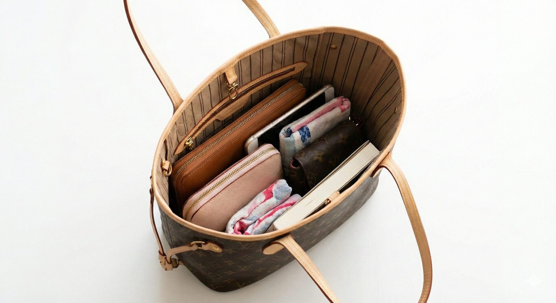 「迷ったら大きい方」という考え方もありますが、ネヴァーフルにおいては必ずしも正解ではありません。大きすぎるバッグは日常使いでは持て余してしまい、結局使わなくなる…というケースも少なくないからです。サイドのストラップを絞ればフォルムを変えることもできますが、まずは自分の「平均的な荷物量」を基準に考えるのが後悔しないコツです。その上で、たまにある大荷物の日のために、少し余裕のあるサイズを選ぶのが賢い選択と言えるでしょう。