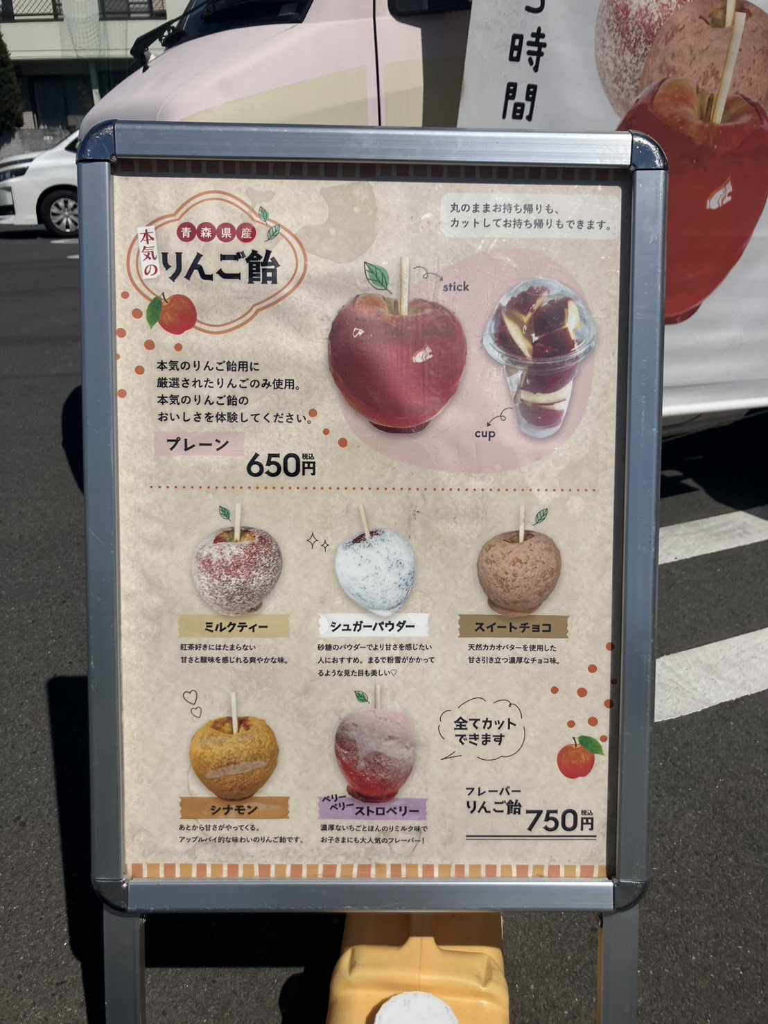 キッチンカー「りんご飴のApple House」とホワイトデー仕様の駐車場イベントの様子