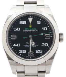 A. エアキング(Air-King)はロレックス(Rolex)が製造するパイロットウォッチ系の機械式時計シリーズであり、1950年代から続く歴史を持ちます。現在は40mmのスポーツ系(Ref.126900)と、生産終了の34mmクラシック系(Ref.14000M等)に大別されます。