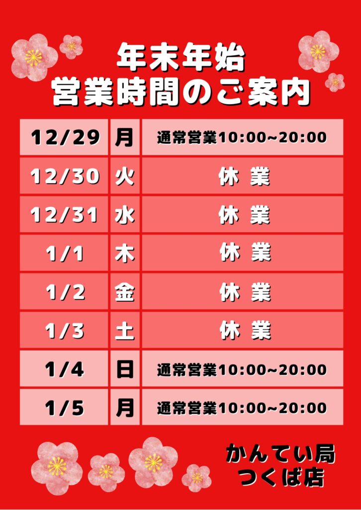 年末年始の営業時間についてのお知らせ|つくばや常総のリサイクルショップ|質屋かんてい局つくば店