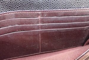 財布やバッグなどの製品は長期間の使用や頻繁な持ち運びによって、バッグのコバ(エッジ部分)が割れてきたり、色が剥げてしまうことがあります。コバ割れは、特にバッグの縁や取っ手部分で見られることが多く、摩擦や衝撃によって少しずつ劣化してしまいます。また、バッグの素材やコーティングの剥げは、頻繁な使用や直射日光や湿気などによって引き起こされることがあります。これらの劣化は、見た目だけでなくバッグの耐久性にも影響を与えるため、定期的なメンテナンスが重要です。日々の丁寧な扱いでお品物の状態を綺麗に保つことができ、お買取金額アップにも繋がります。