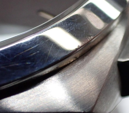 ケースにキズやスレの形跡が見られますと価格帯が落ちますのでお気をつけください。特に時計の使用度が大きいお品物は減額対象になりますので注意が必要です。