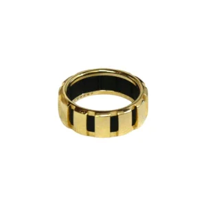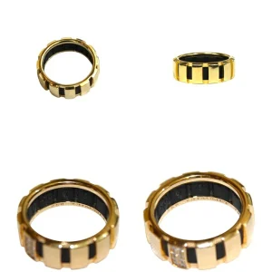 イエローゴールドの温もりとラバーのクールな質感が見事に調和し、ユニセックスな雰囲気を漂わせます。