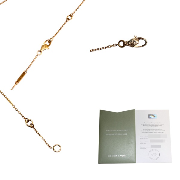 素材には、肌なじみが良く、華やかさと品格を兼ね備えた18金イエローゴールド(750YG)を使用。ゴールド特有のあたたかみのある輝きが、首元にやさしい光を添え、身に着ける人の印象を明るく引き立てます。モチーフの縁を彩るビーズ装飾は、【ヴァンクリーフ&アーペル】を象徴するディテールであり、細部に至るまで職人の手仕事による精緻さが感じられます。