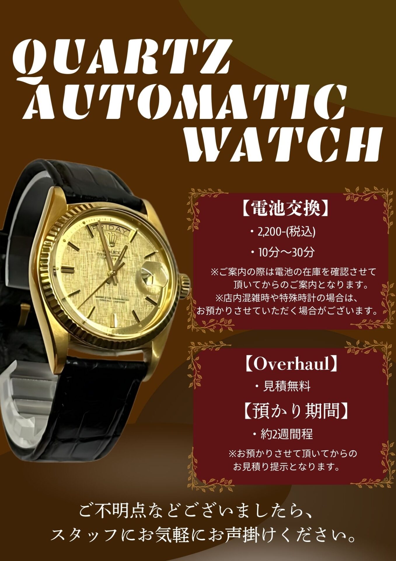 ※店内混雑時や特殊時計の場合は、お預かりさせていただく場合がございます。