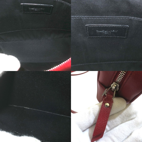 上質なカーフレザーを使用し、なめらかでしっとりとした質感が特徴。発色の美しいレッドカラーは、コーディネートのアクセントとしても映え、シンプルな装いに華やかさを添えてくれます。フロント中央には、サンローランを象徴するYSLメタルロゴが配され、ひと目でラグジュアリーブランドと分かるアイコニックなデザインに仕上がっています。